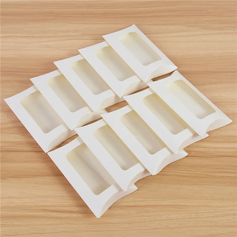 50PCS Pillow Shape Cookie Candy Box with Window Wedding Party Christmas Kraft Paper Gift Packaging Boxes Birthday Party Supplies