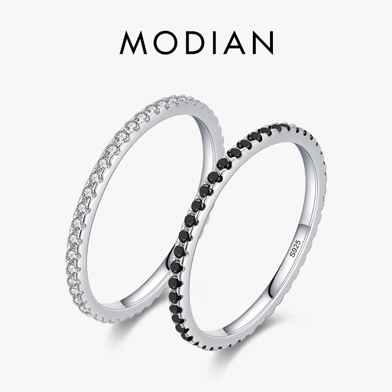 MODIAN Real Silver Black Zirconia Stackable Rings Fashion Crystal 925 Sterling Silver Finger Rings for Women Party Fine Jewelry