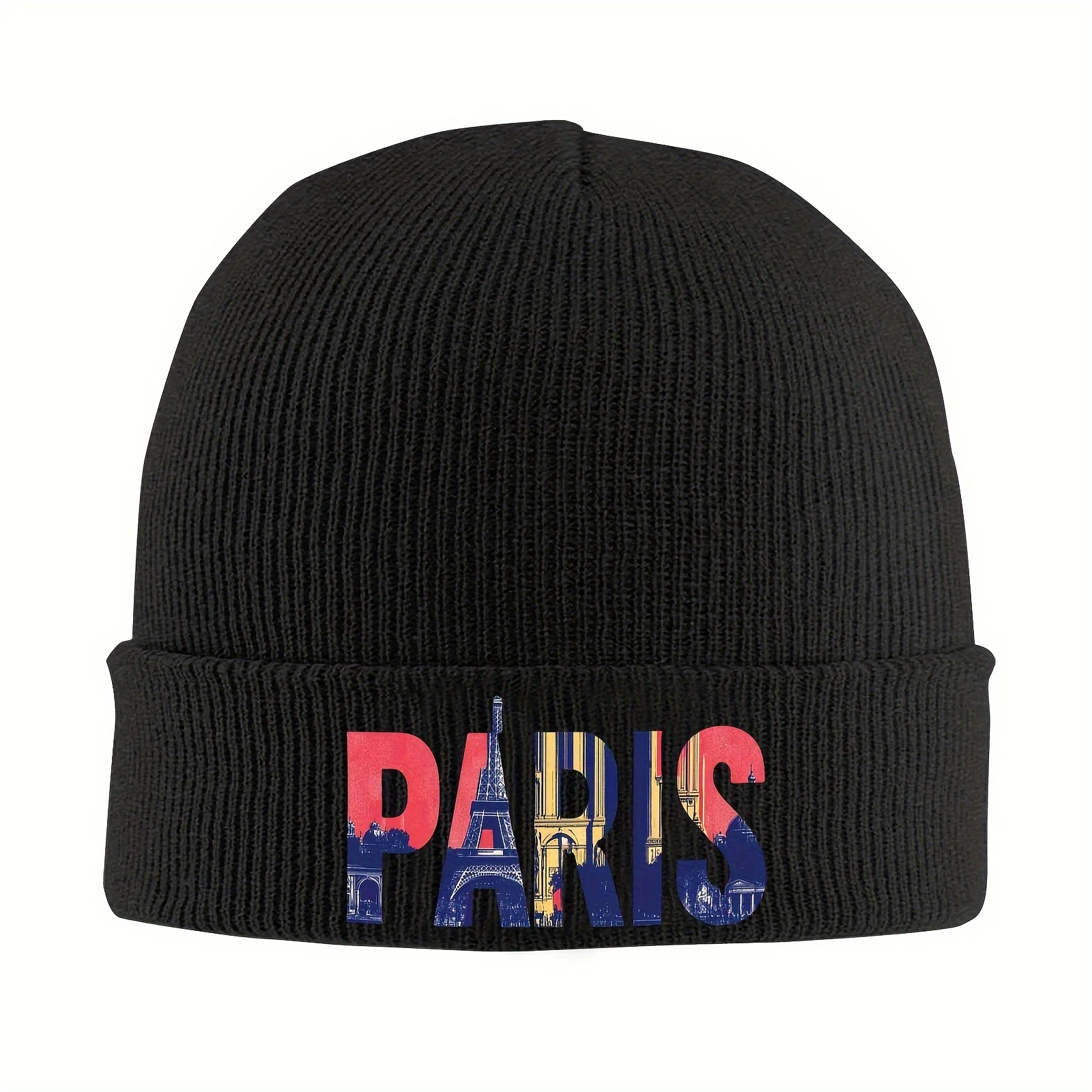 Unisex Knit Beanie Hat with Paris Theme Stylish Funky Windproof for Ski Cold Weather