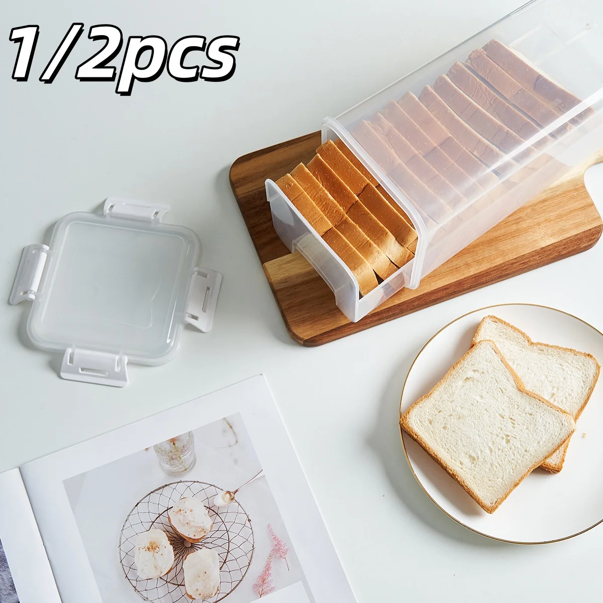 1/2pcs Bread Loaf Container Clear Airtight Bread Box With Lid Sandwich Bread Holder Kitchen Pasta Multigrain Toast Storage Boxs