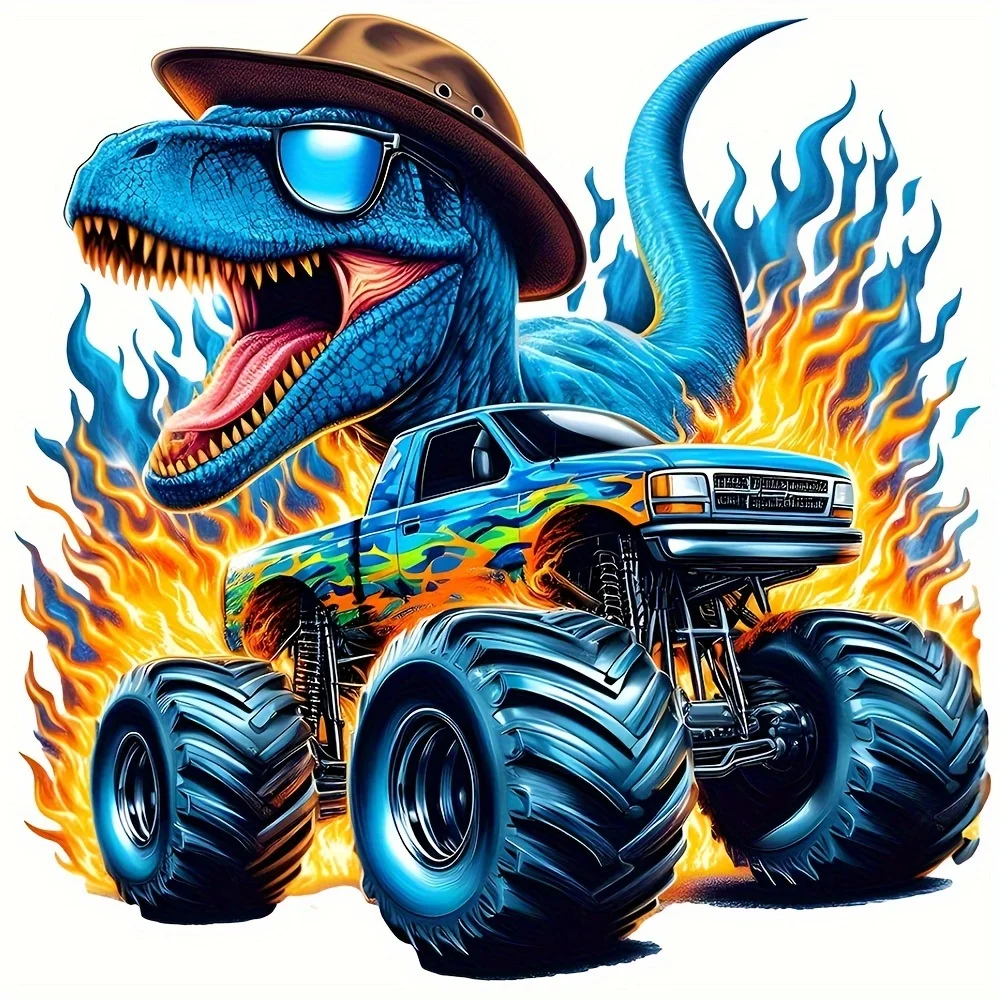 Dragon Hunter Monster Truck Heat Transfer Patch – Washable Grade A Iron-On for Men Women T-Shirts Backpacks Caps