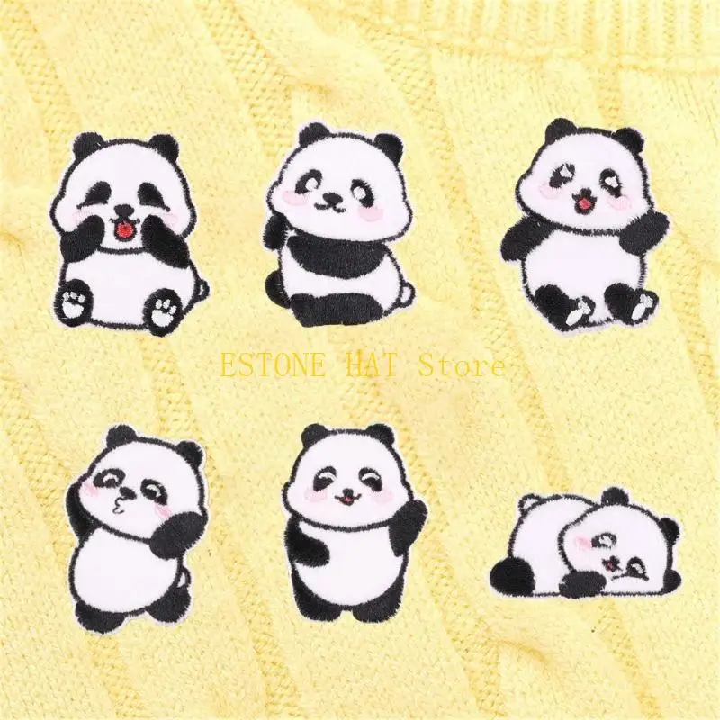 49MF Set Of 6 Panda Cloth Patches Animal Patches Stickers With Adhesive Backing Perfect For Decorating Clothes And Accessories
