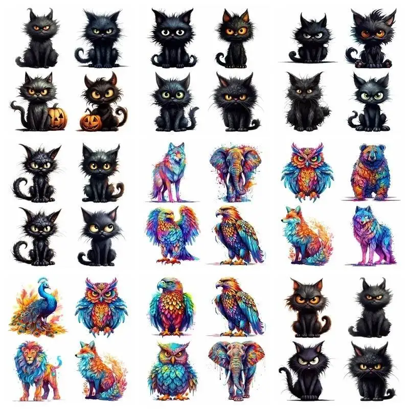 Wolf Fox Panda Black Cat Iron Transfer Sticker Diy A-Level Washable Heat Press Printed Accessories children Clothing Patch