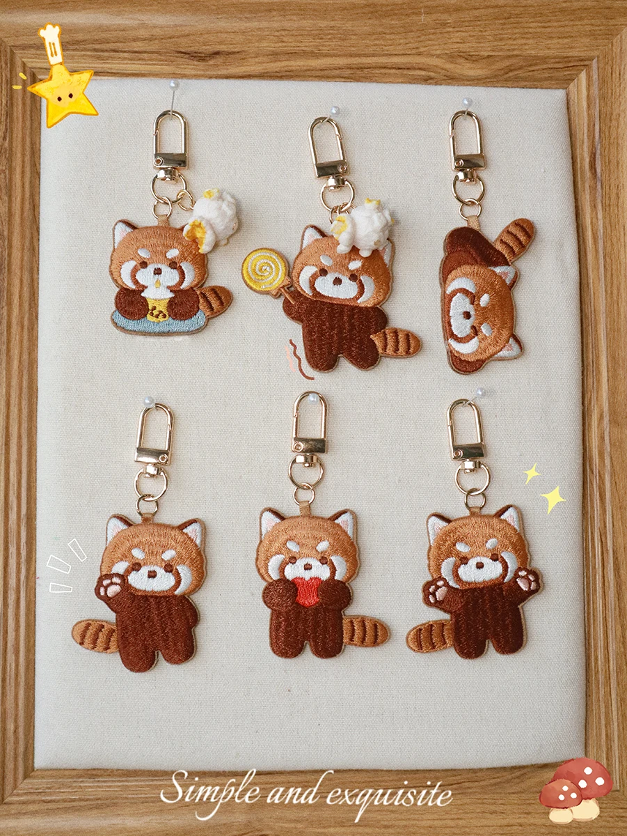 1 Piece Embroidered Red Panda Patch Key Chain - Cute Cartoon Themed Durable Keychain Key Ring for Easy Attachment