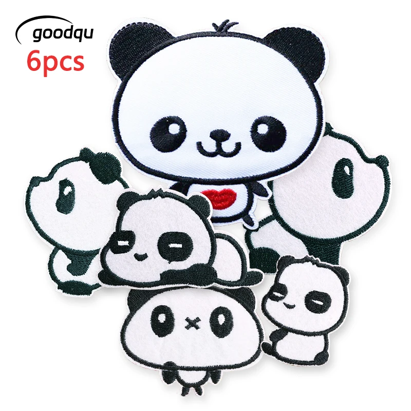 6pcs Cute Pandas Animals Anime Iron On Patches For Clothes Jacket Sewing Embroidered Kids Stickers Pack Lot Fabrics Diy Thermal