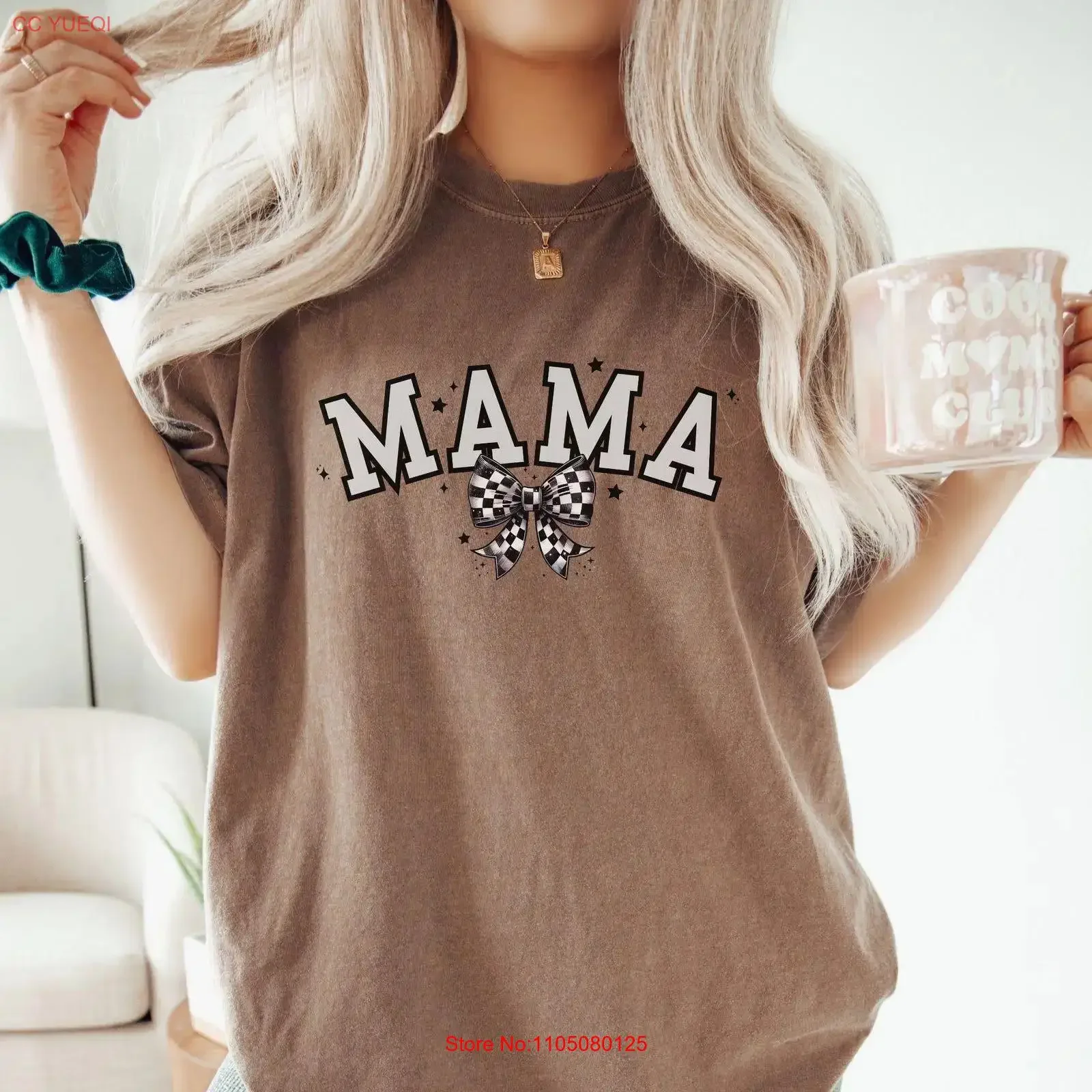 Coquette Mama T Shirt Checkered Bow for Mom Mothers Day Edgy Outfit Baby Shower New Momma vintage Washed Stretched Comfortable