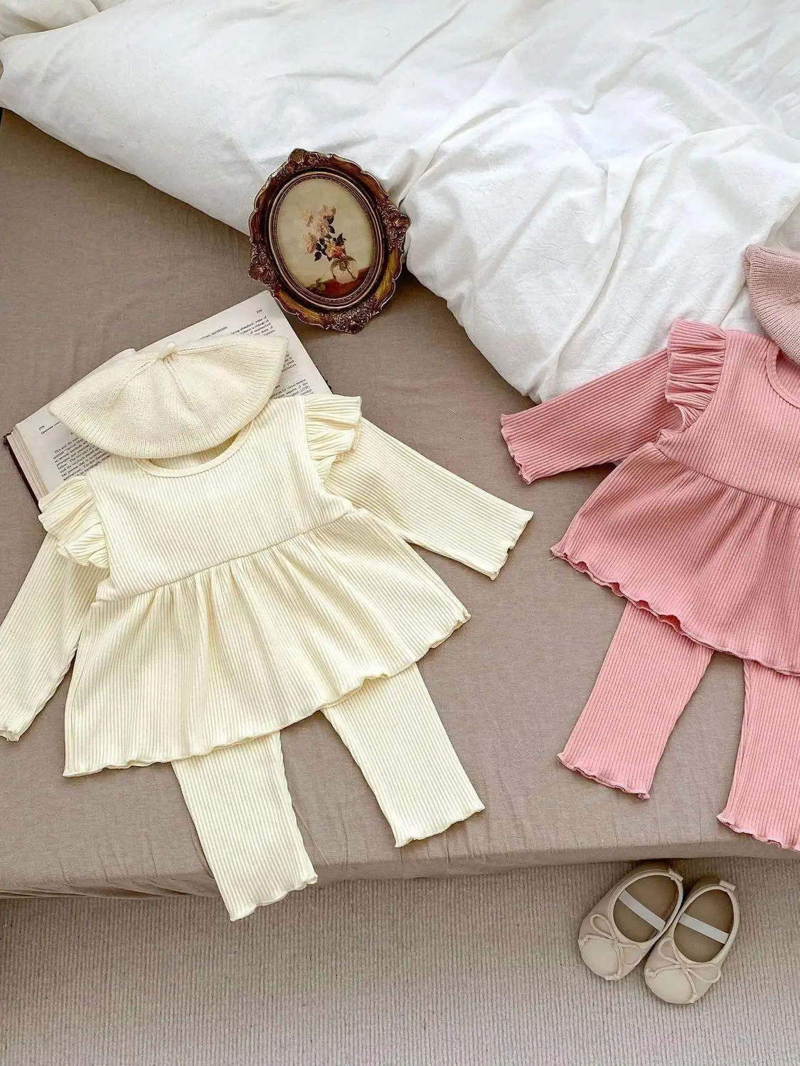 Faionable Pure Cotton Long Sve Home Clothes Set for Baby Girls Boting irt plus Pants Comfortable Autumn Outfit