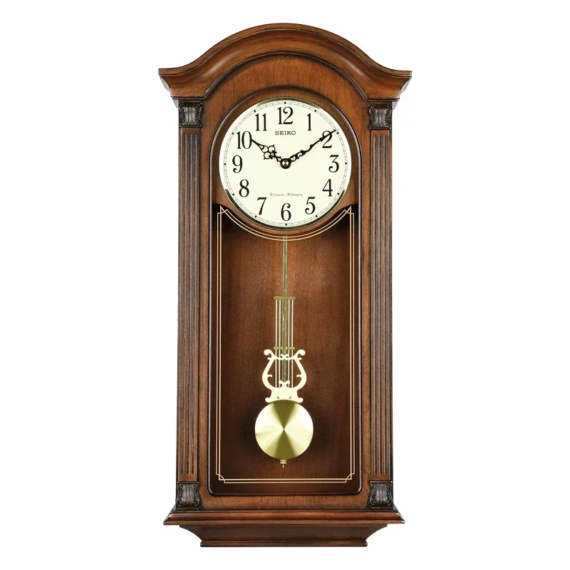 Great discounts Seiko Clock European-Style Living Room Luxury Music Time Reporting Pendulum Retro Solid Wood Large Wall Clock