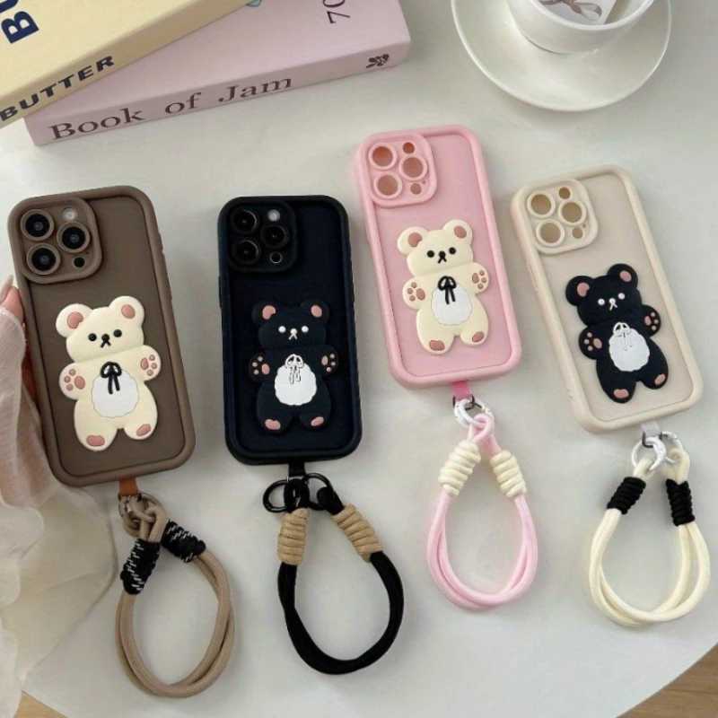 3D Cartoon Bear Soft Silicone Phone Case For iPhone 17 Air 16e 15 13 14 12 11 Pro Max Mini XS XR X 7 8 Plus Shockproof Cover