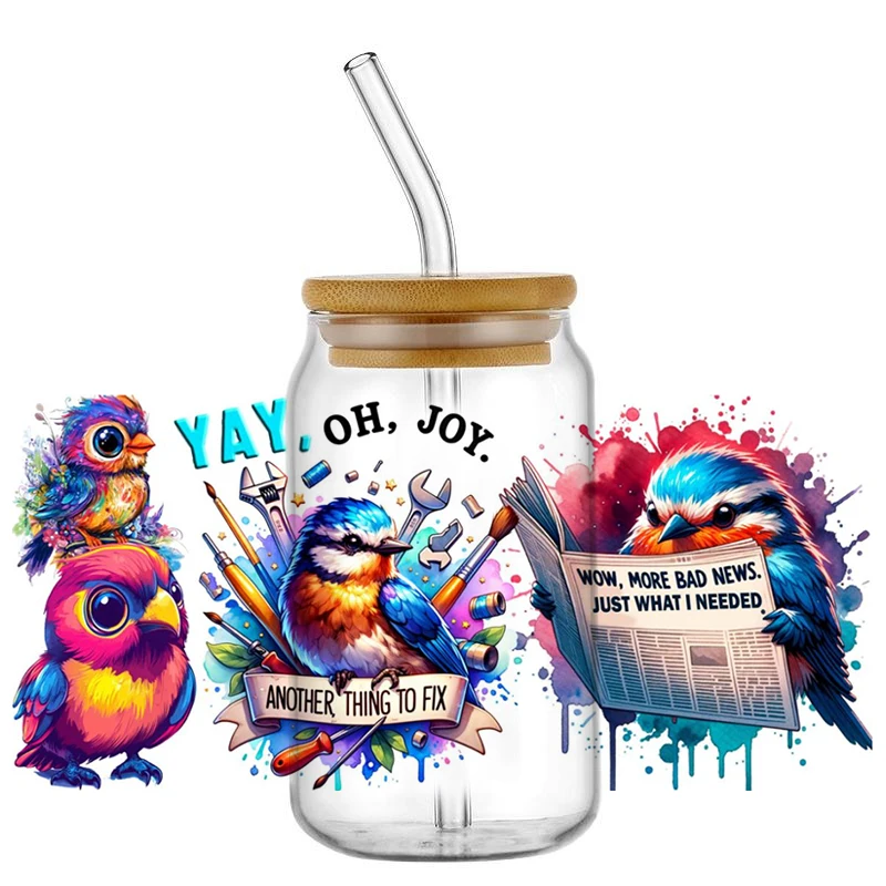 New Fantastic Bird Owl 3D Decal UV DTF Cup Wraps for 16oz Waterproof Transfer Sticker Glasses DIY Mug Phone Sticker