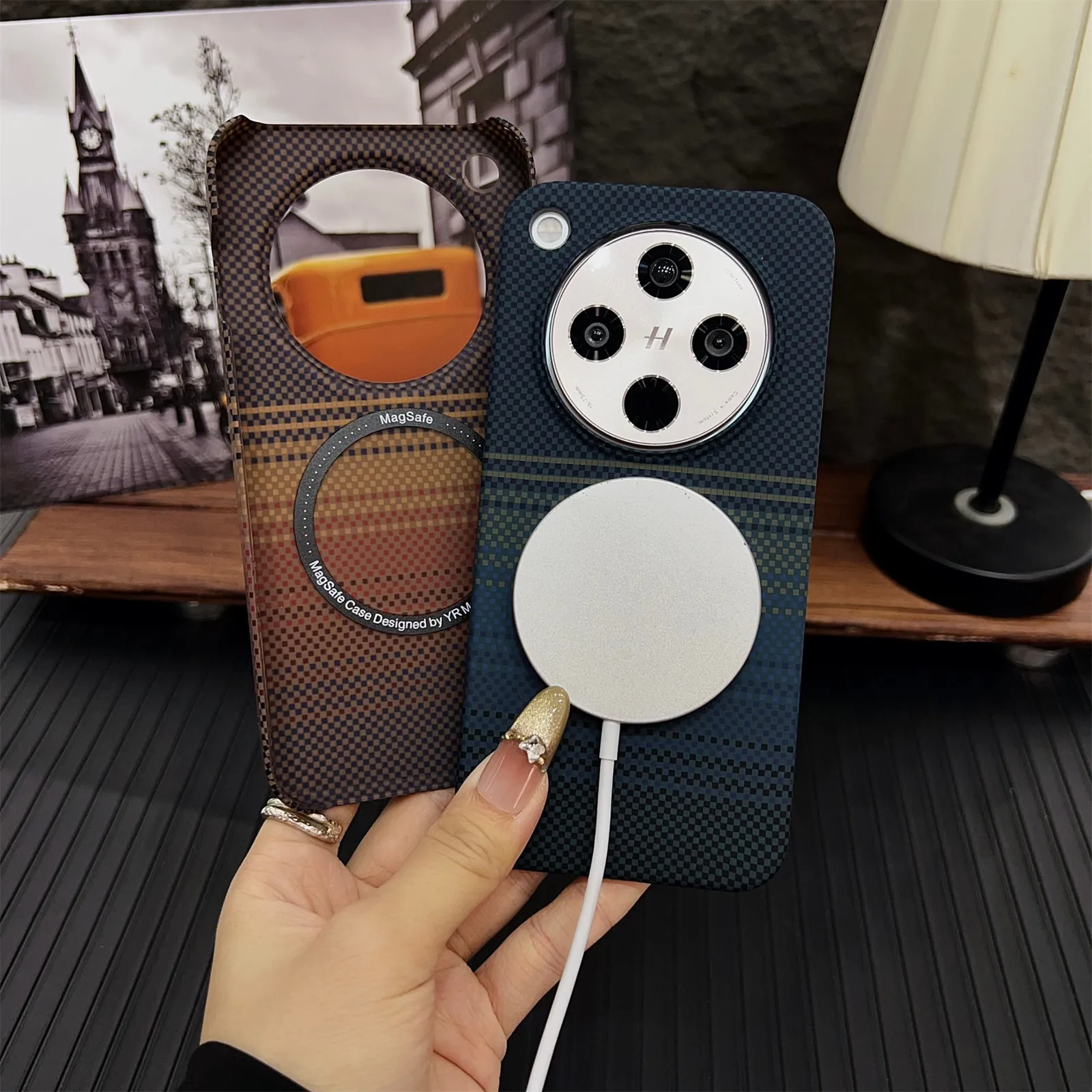 Kevlar Pattern Magnetic Phone Case for iPhone 12 13 14 15 16 Pro Max Semi Wrap Carbon Fiber Texture Slim Protective Cover