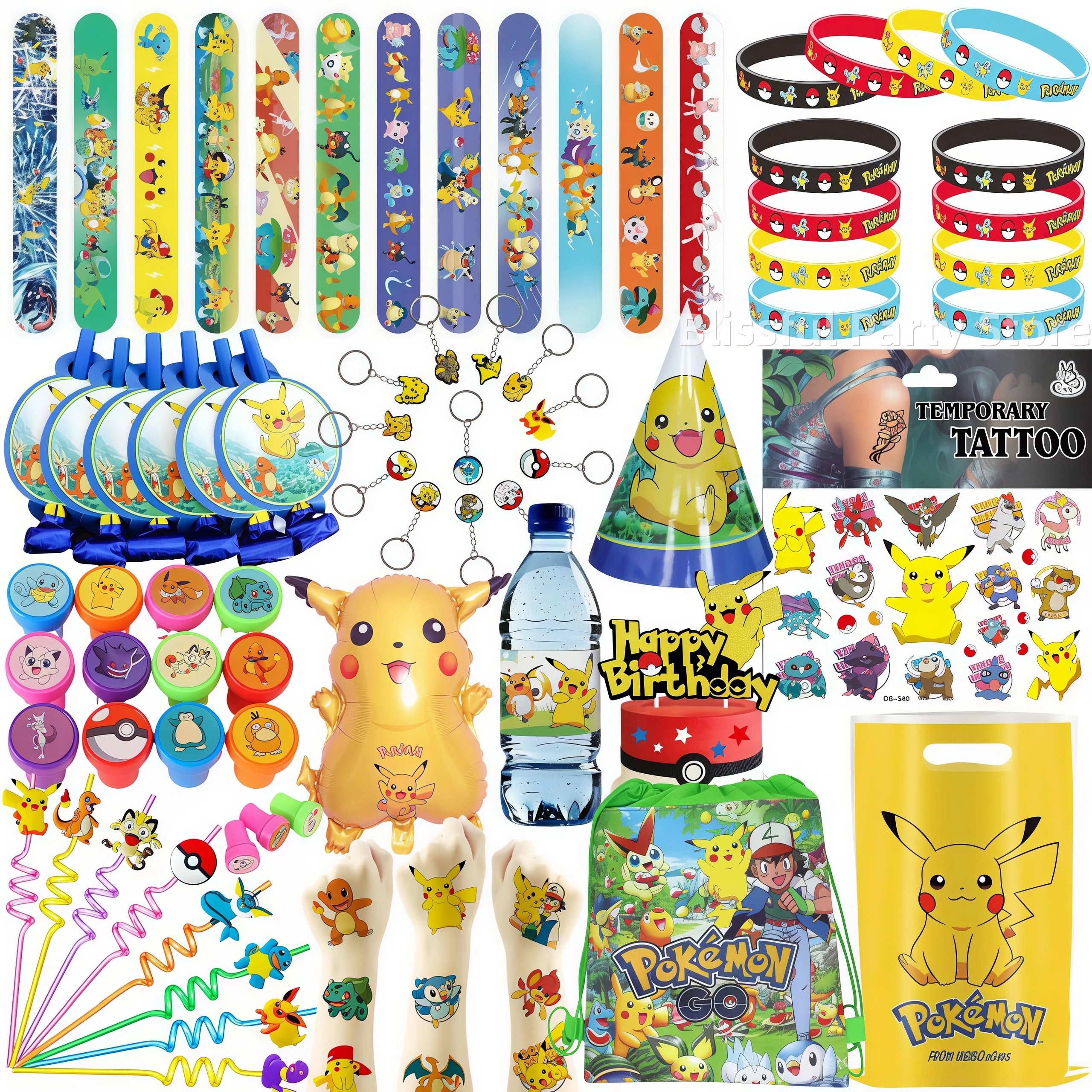 Pokemons Party Favors Pikachu Birthday Gifts Slap Bracelets Stamps Tattoos Stickers Kids Goodie Bag Fillers Party Decor Supplies