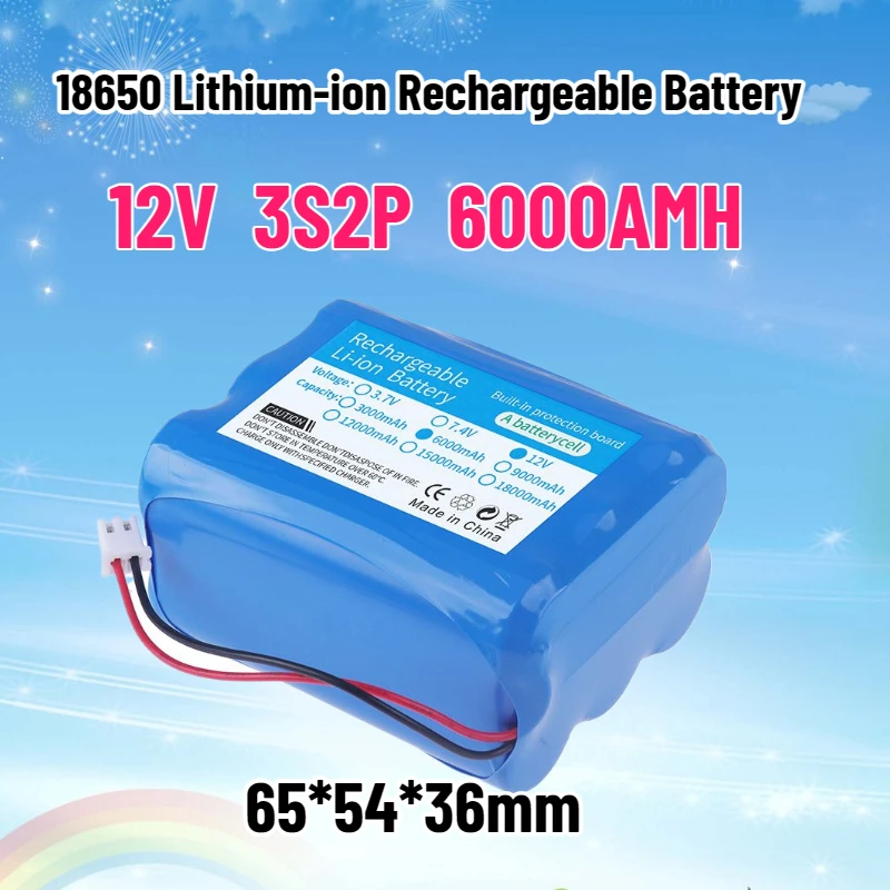 12V 3S2P 6000AMH 18650 Lithium-ion Battery for Speaker Flashlight CCTV Camera GPS Searchlight Portable Kit XH 2.5 Plug, 2 Pins