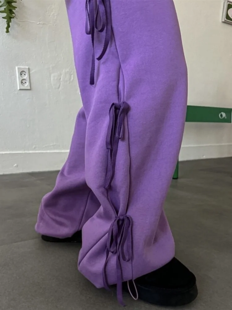 Chic Knitted Wide Leg Pants Pure Color Knot Sweatpants Long Trousers Trendy Sle Fem Faion Spring Season