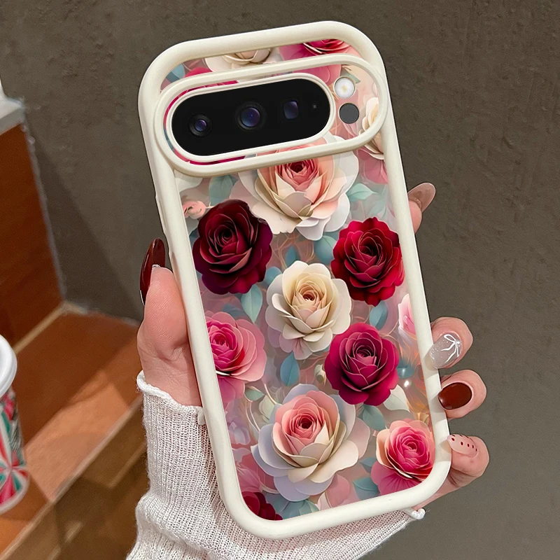 Soft TPU Phone Case For Google Pixel 10 9 8 7 Pro Pixel 9 10 Pro XL 7A 8A 9A Shockproof Red Rose Floral Pattern Silicone Cover