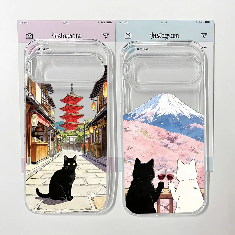 Japan Anime Black Cat Landscape Phone Case For Google Pixel 9 Pro XL 10 8 Pro 6 7 7A 8A 5G Mount Fuji Clear Soft TPU Cover Coque