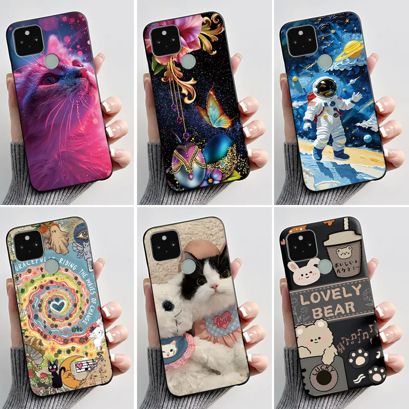 Casing For Google Pixel 5 5A Case Aesthetic Fashion Cute Cat Black Soft Silicone Cover For Google Pixel 5 XL 5A 5G Phone Case