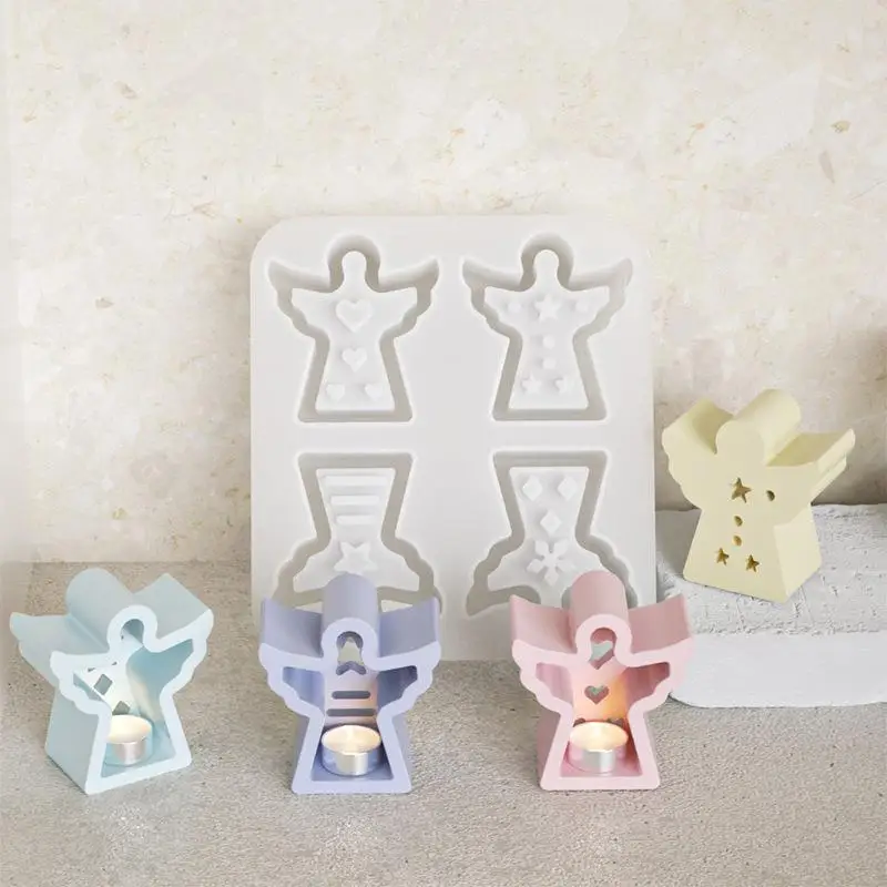 4-Holes Angel Shape Silicone Mold DIY Candle Mold Making Plaster Orname Mould For Tabletop Casting Decoration Handicraft Gift