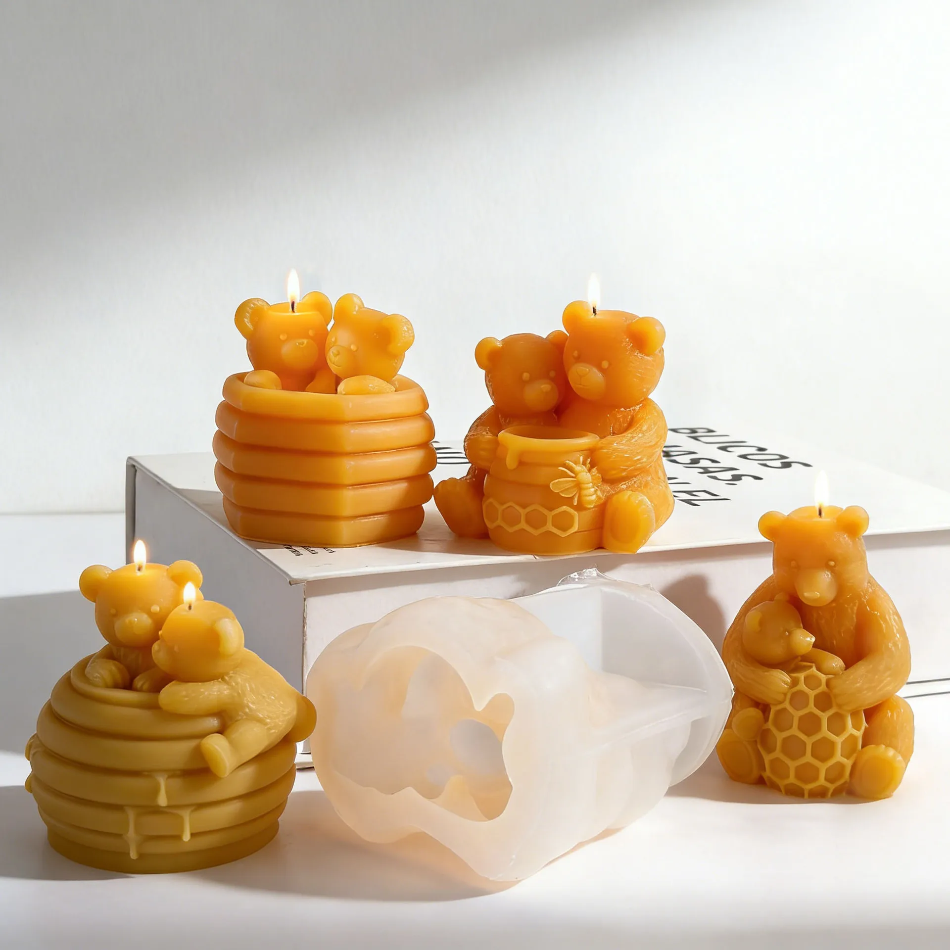 Honeycomb Bear Handmade Scented Candle Decor Silicone Mold DIY Animal Bear Resin Drip Casting Plaster Silicone Mold