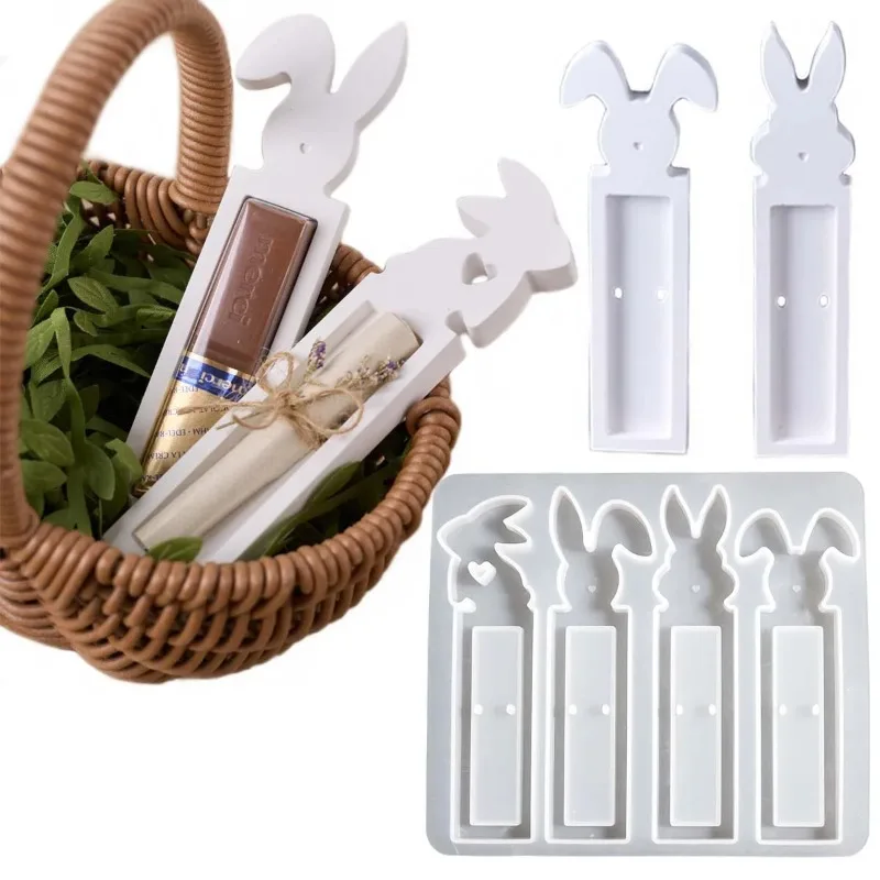 Easter Stand Rabbit DIY Chocolate Cash Gift Box Silicone Mold,Bunny Plaster Resin Wishing Storage Casting Molds Home Craft Decor