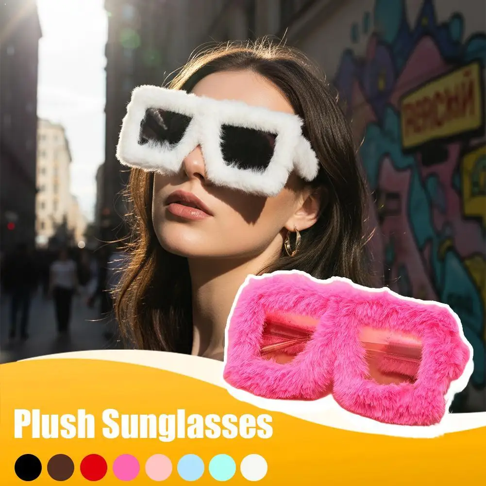 Y2K Oversized Plush Sunglasses, Soft Fluffy Winter Shades for Women, Party Christmas Halloween Cosplay Novelty Glasses