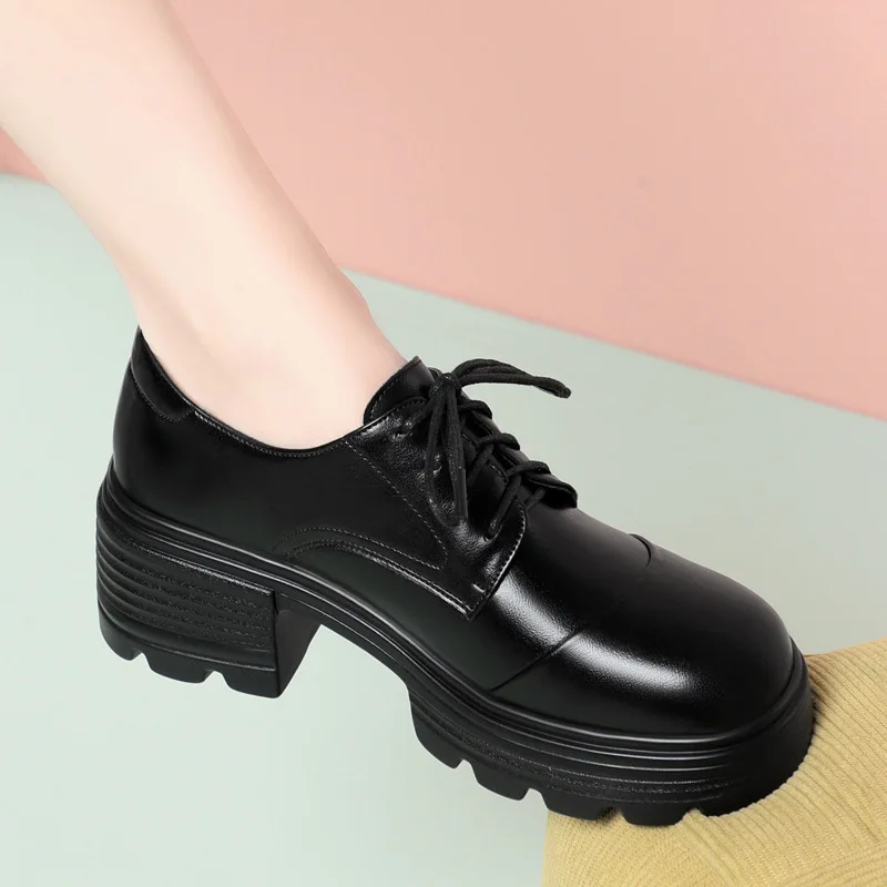 6cm Retro Breathable Comfortable Thick Bottom Platform Shoes 2025 Fall Block Heels Soft Leather Shoes Oxfords Office Mom Work