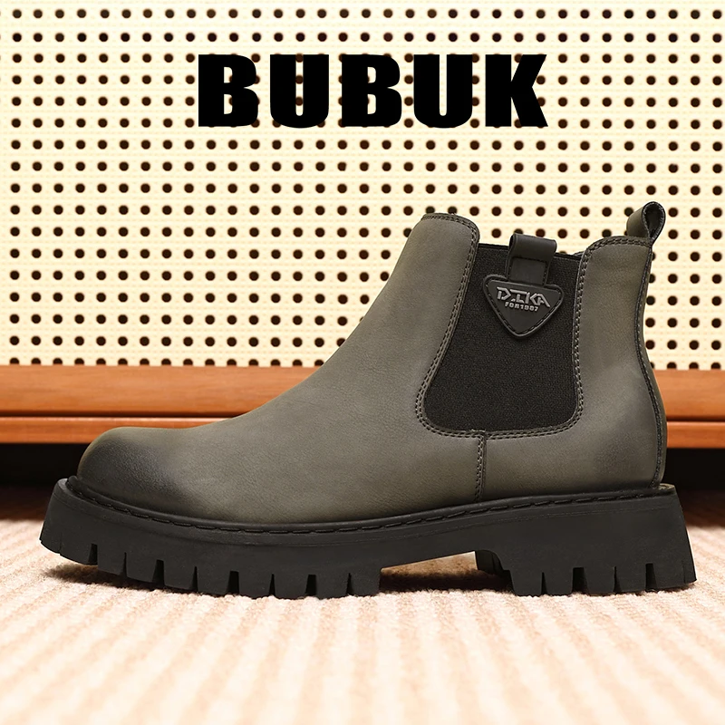 Retro Men's Genuine Leather Chelsea Boots High Top Leather Shoes Outdoor Platform Ankle Western Work Boots Elastic Oxfords