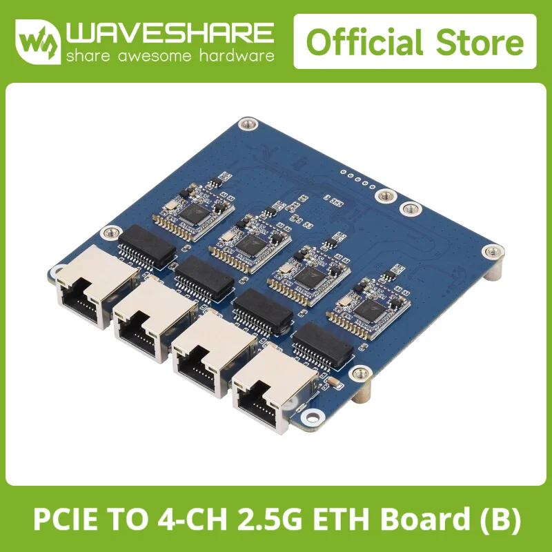 Waveshare PCIe TO 4-Ch Gigabit / 2.5G ETH Board (B) For Raspberry Pi 5, Supports Raspberry Pi OS, Driver-Free, Plug And Play