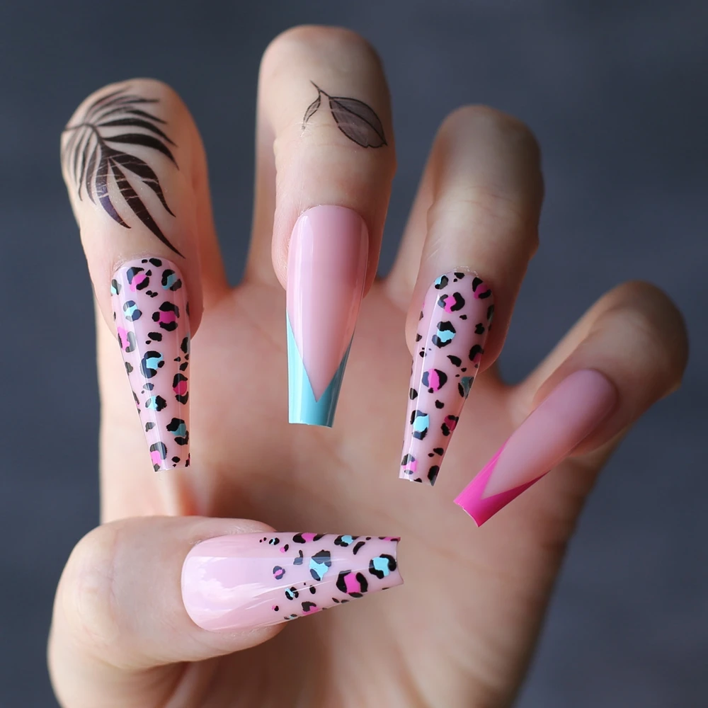 Pink cheetah extra Coffin Artificial false nails Ballet Candy Leopard French Blue Fake nails Nude press on nails