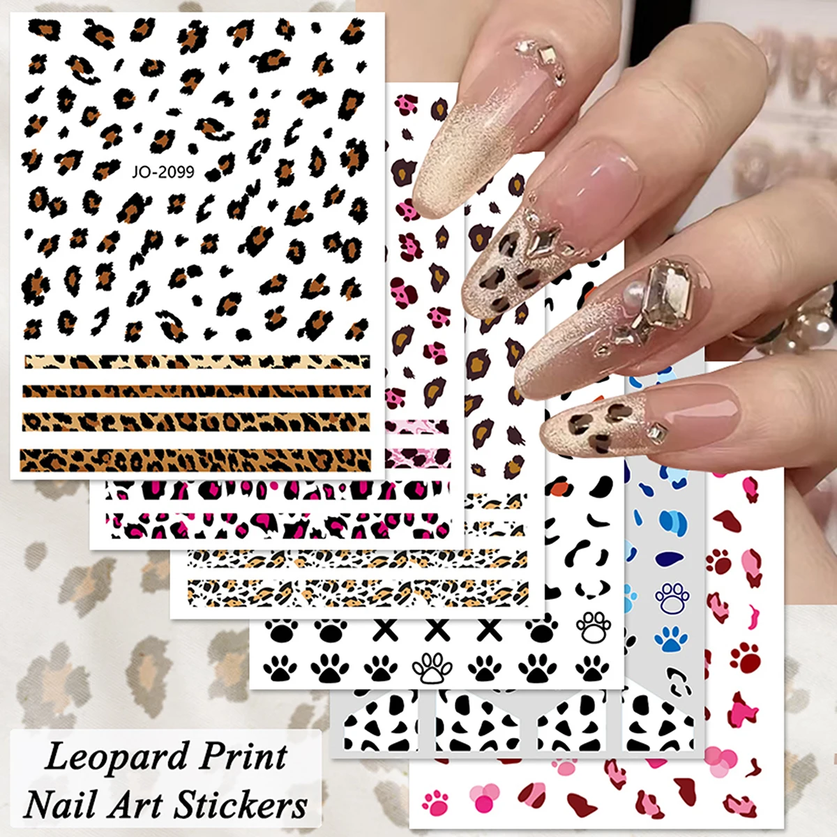 3/6/12 Sheets Leopard Print Nail Art Stickers Animal Pattern Nail Decals Cheetah Cow Paw Print Nail Stickers for Women DIY