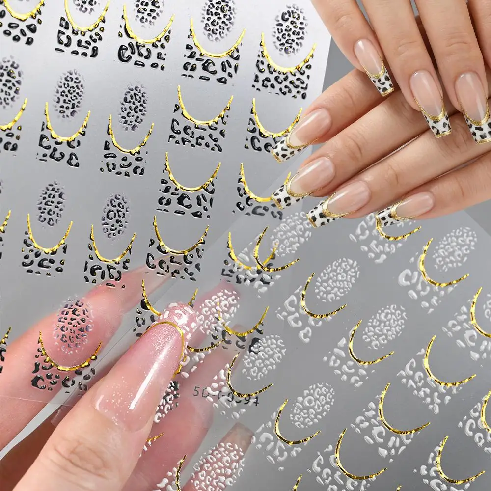 2Pcs 5D Sexy Leopard French Nail Stickers Simple Black White Leopard Print Adhesive Nail Decals Cheetah Zebra Pattern Sliders NK