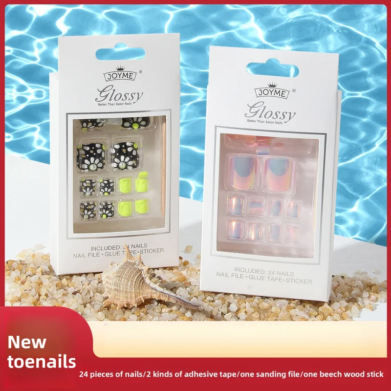 24Pcs Summer Toenail Stickers - Iridescent Cheetah Print Cute Cartoon Press on Nails with Kit