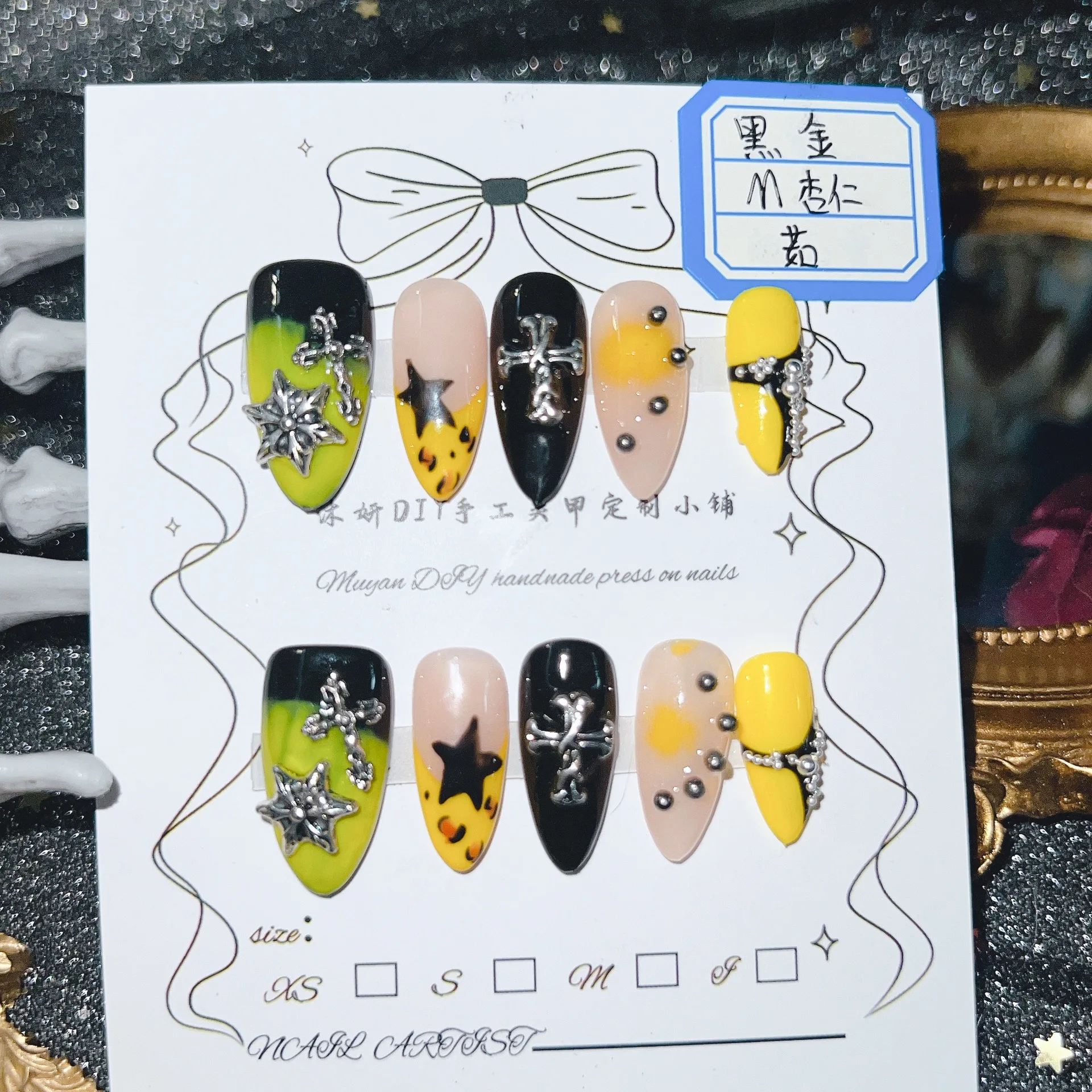 Handmade NailsPress-on Nails Original Design Black-Gold Cheetah Hand-painted European and American Cross-border Best-selling