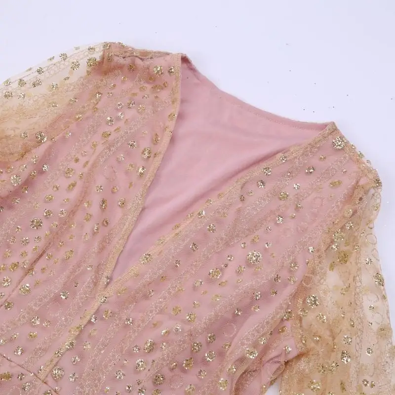 Womens Shiny Sequins See Through Tulle Dress Hanging Neck Plunging V Sleeveless Backless Sexy Dress Night Bar Tempting Dress