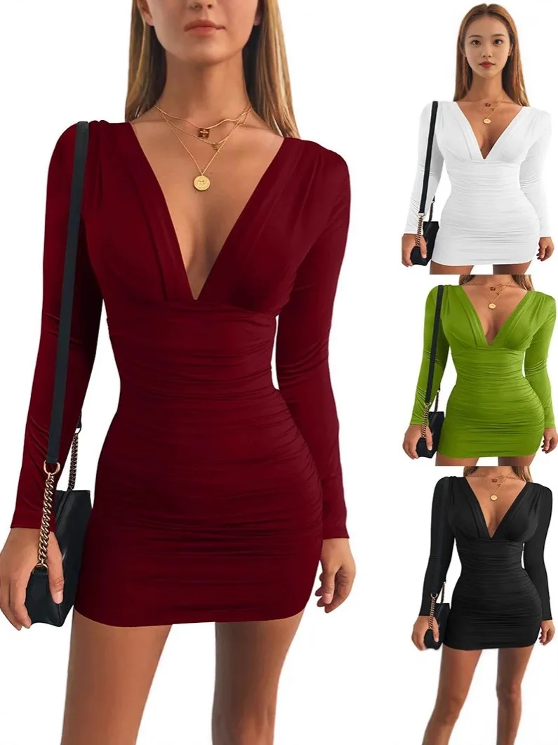 Figure-Hugging Dress Ultra-Plunging V Neck Dress Curve-Enhancing Bodycon Fitted Dress Super-High Waist Pencil Dresses
