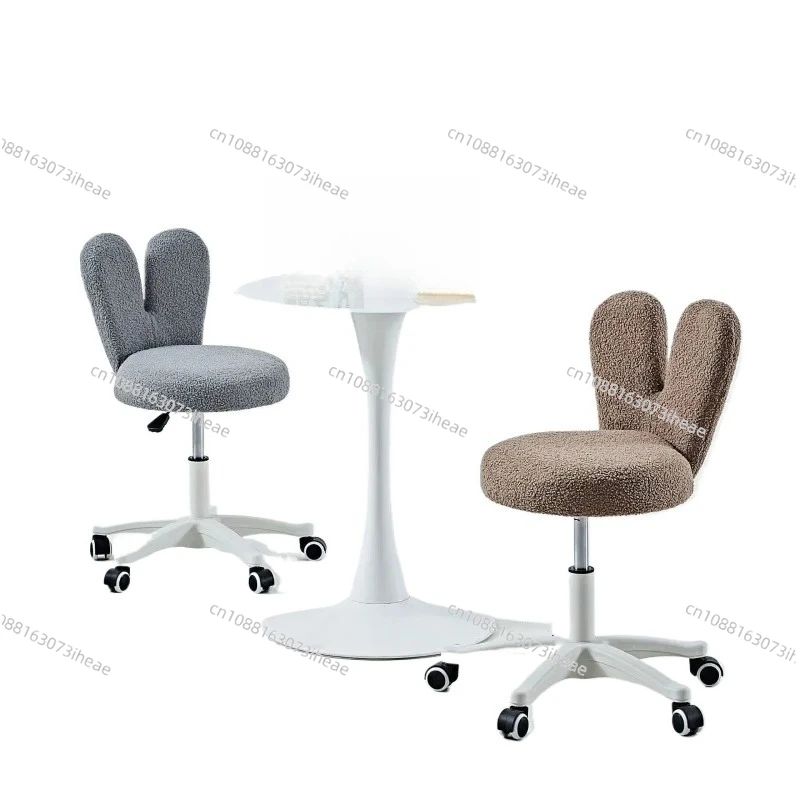 A Nordic Furniture Lamb Velvet Living hairs Bedroom Makeup Stool Rotating Pulley Stool Leisure Seat Elevating Backrest Chair