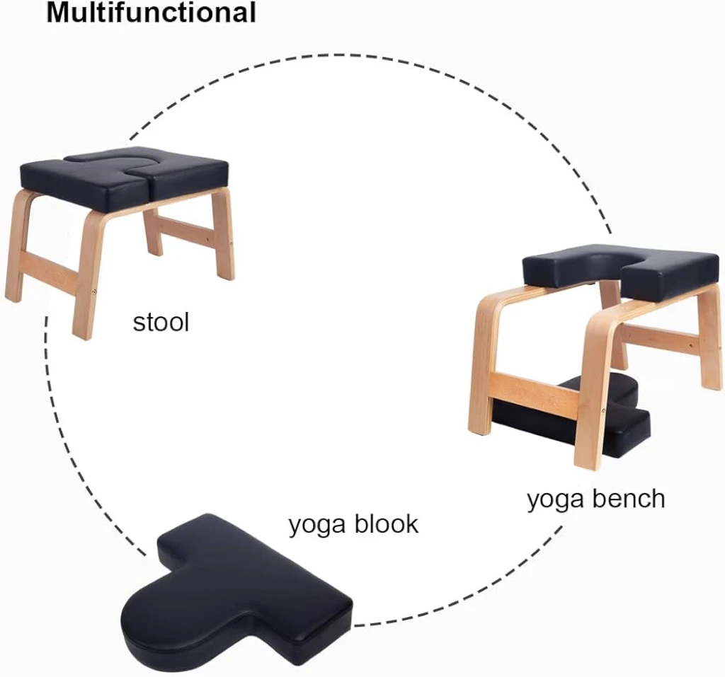 Yoga Inversion Bench Headstand Prop Upside Down Chair for Balance Training Core Strength Building Backbends Yoga Practice Chair