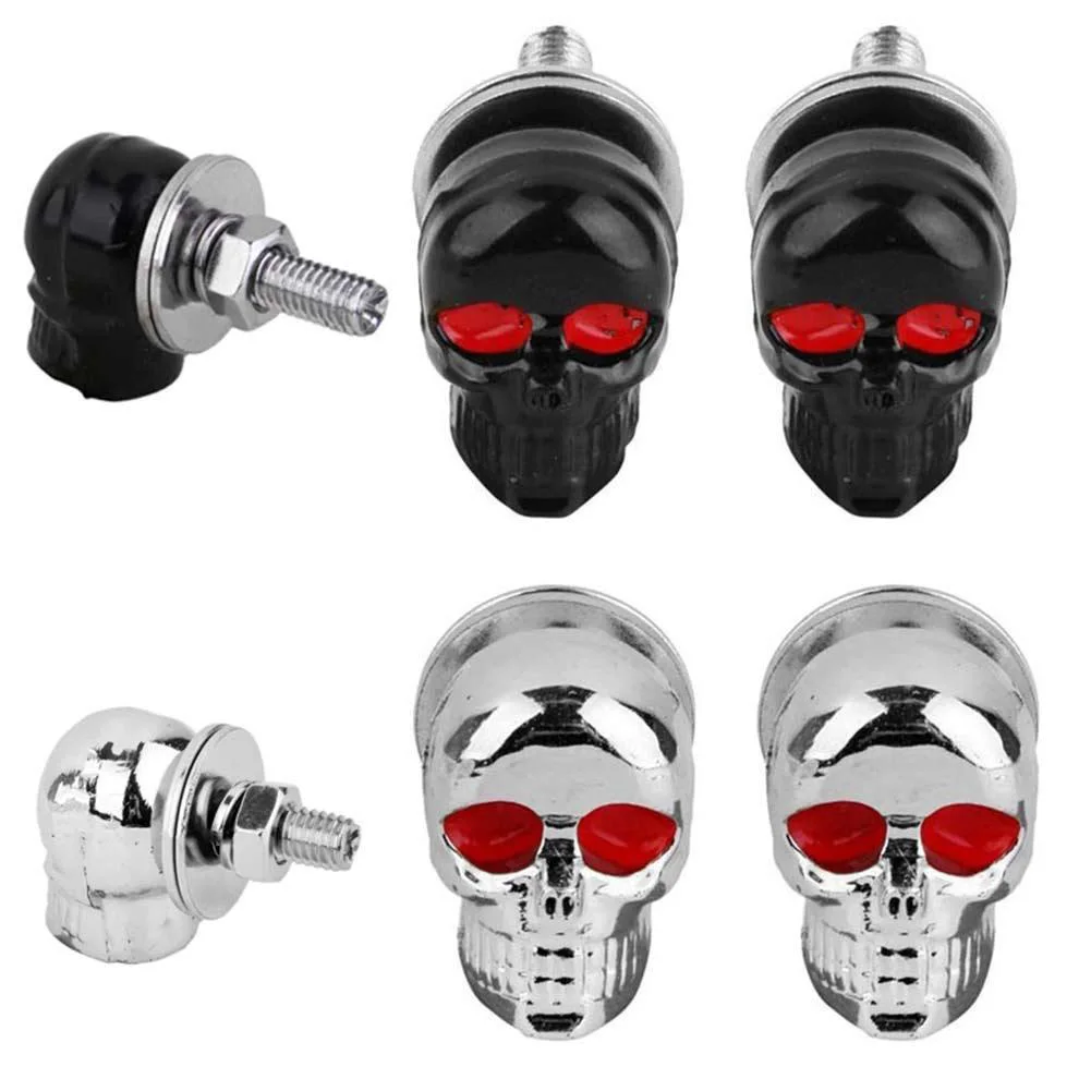 2Pcs Motorcycle Skull License Plate Frame Bolts Screws Auto License Plate Screws Car Truck Fastener Cap Bolts For Any 6mm Bolts