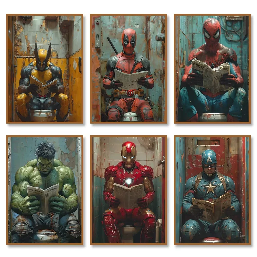 Miniso Disney Marvel Comic Poster Spiderman Iron Man Hulk Captain America Canvas Painting Anime Wall Art Prints Home Decor