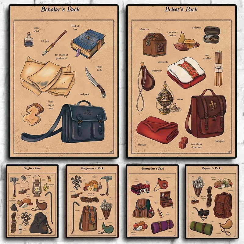 Vintage Game Thief's Pack Fantasy Posters Prints Rogue Burglar Ranger Dungeons and Dragons Wall Art Canvas Painting Room Deco