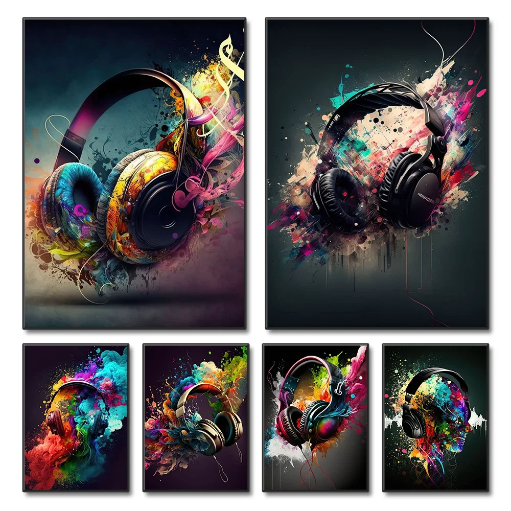80s 90s Colorful Neon Earphones Canvas Poster Fantasy Headphone Pictures Wall Art Painting For Living Room Home Decor Unframe