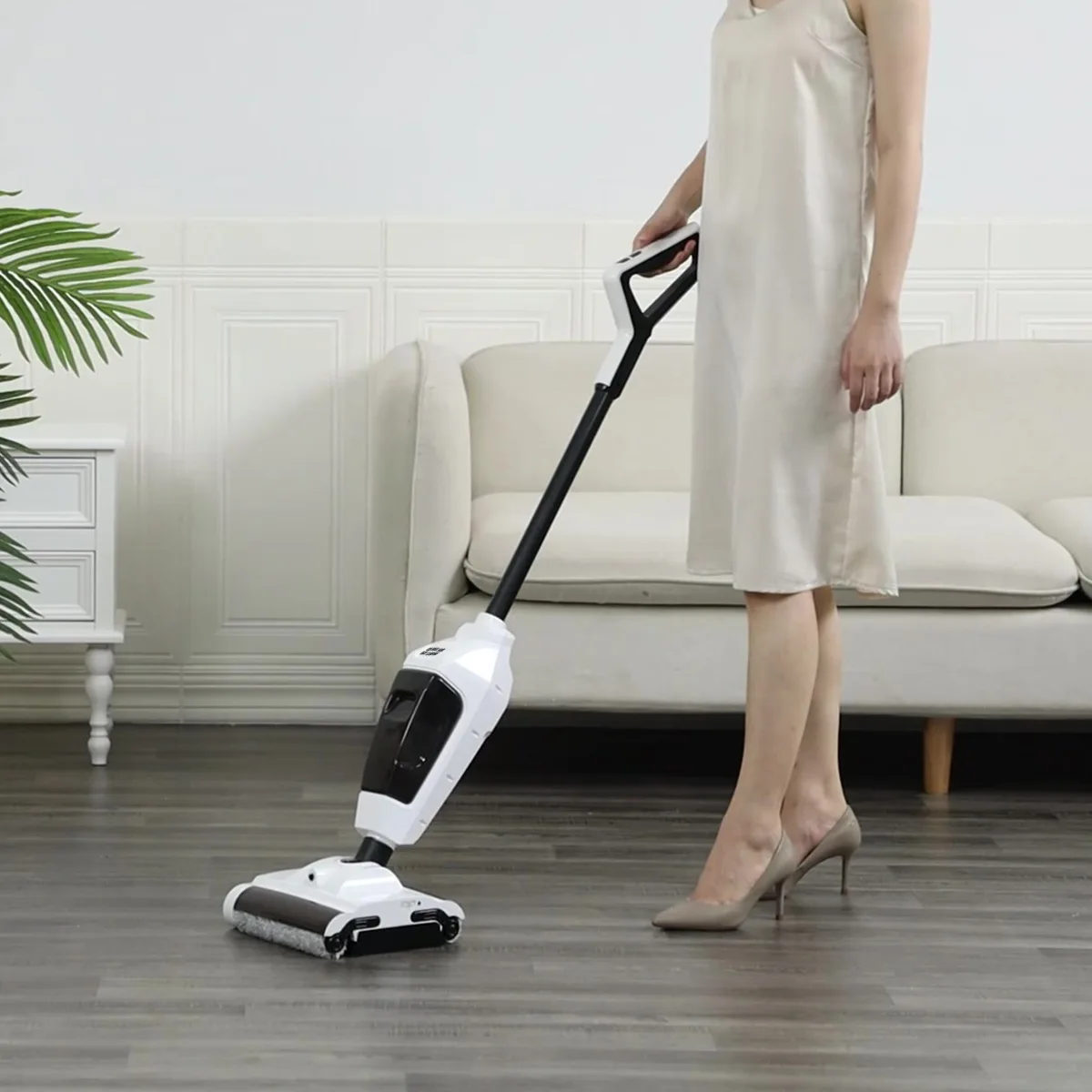 Dual Roller Brush Floor Washer: Dual Power + Long Battery Life One-Click Self-Cleaning Efficient Whole-House/Edge Cleaning