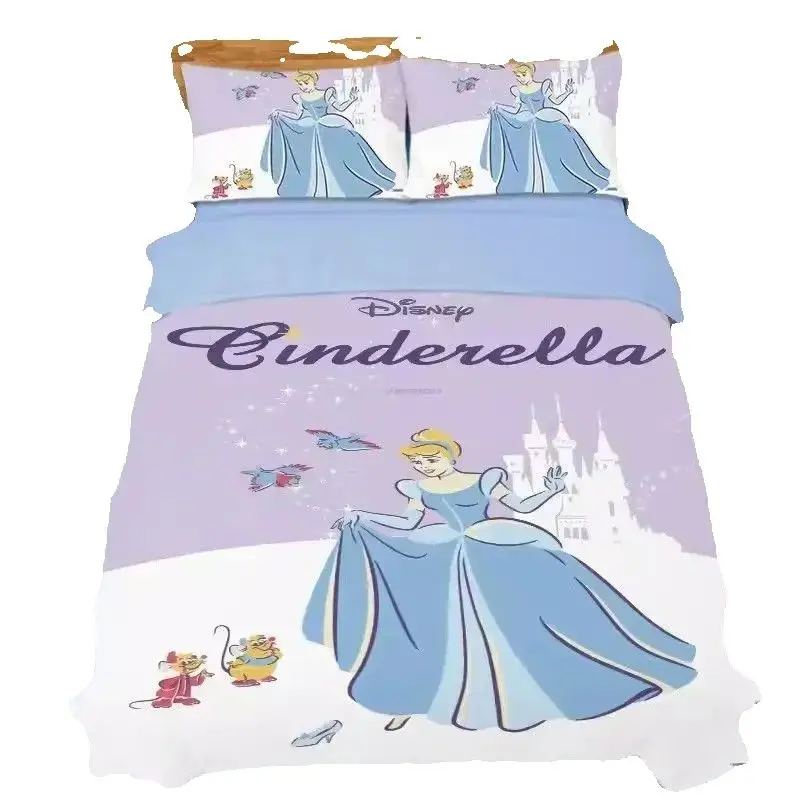 Disney Princess Series 100% Polyester Bedding Set Duvet Cover For Home 3-Piece Set 1 Quilt Cover Anime Cute Printed Cartoon