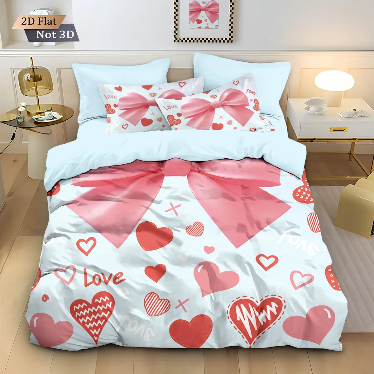 3D printing Cute bow and heart pattern Bedding Set Girls ladies pink Duvet Cover Set Cute Princess Bedroom Decor