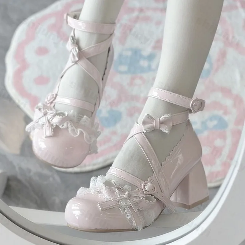 Mary Jane Shoes Women 2026 Cute Bow Lace Edging High Heels Lolita Comfortable Round Toe Princess Pumps Shoes Zapatos Mary Jane