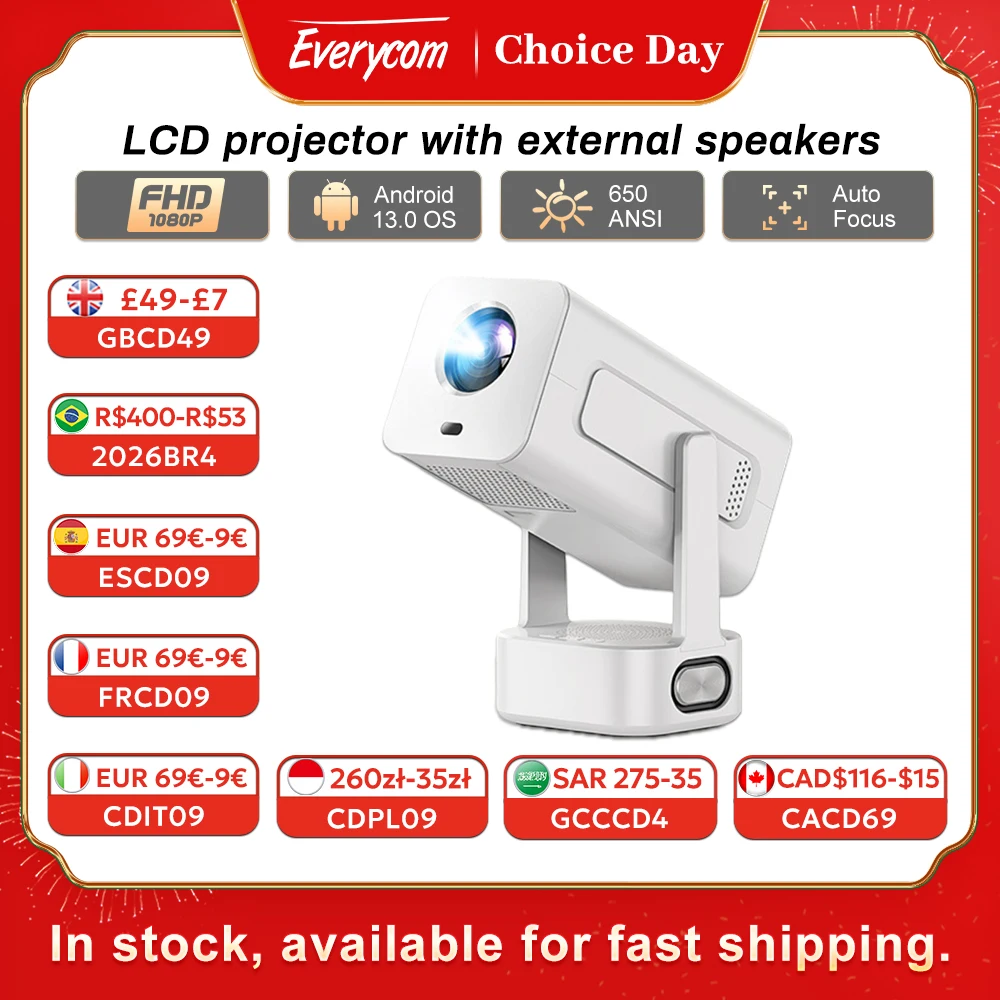 Everycom HY300 Pro MAX 1080P Full HD Projector Android 13 Wifi 6.0 BT5.2 Cinema Sound Speaker Protable Mini Projetor Supports 4K