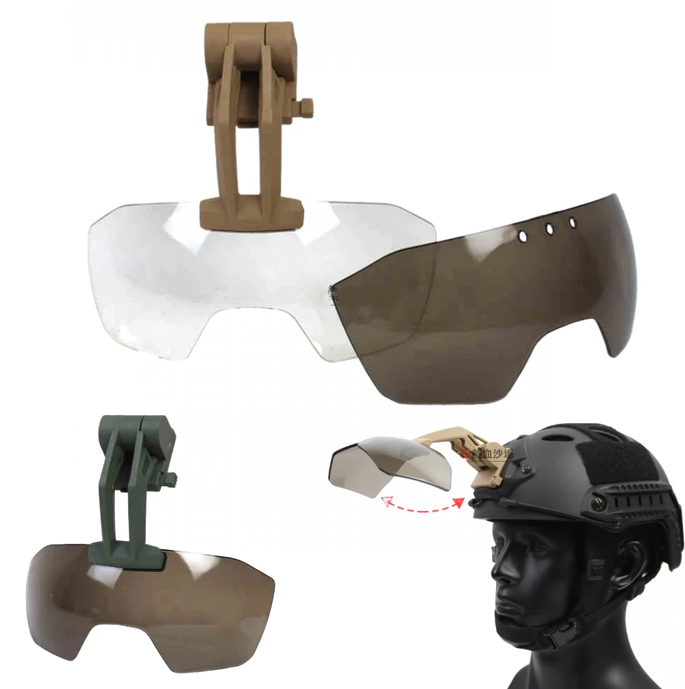 Adjustable Tactical Helmet Flip Goggles Anti-Fog Lens Shroud Mount Arm Visor Windproof Protection for Airsoft Paintball Helmet