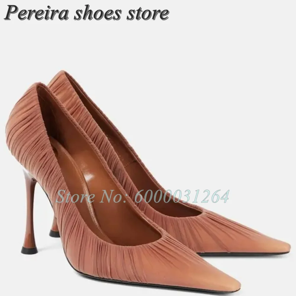 Brown Shallow Pointy Toe Heeled Sandals Slip On Pull On High Heels Strange Style New Women Luxury Designer Shoes Spring Summer