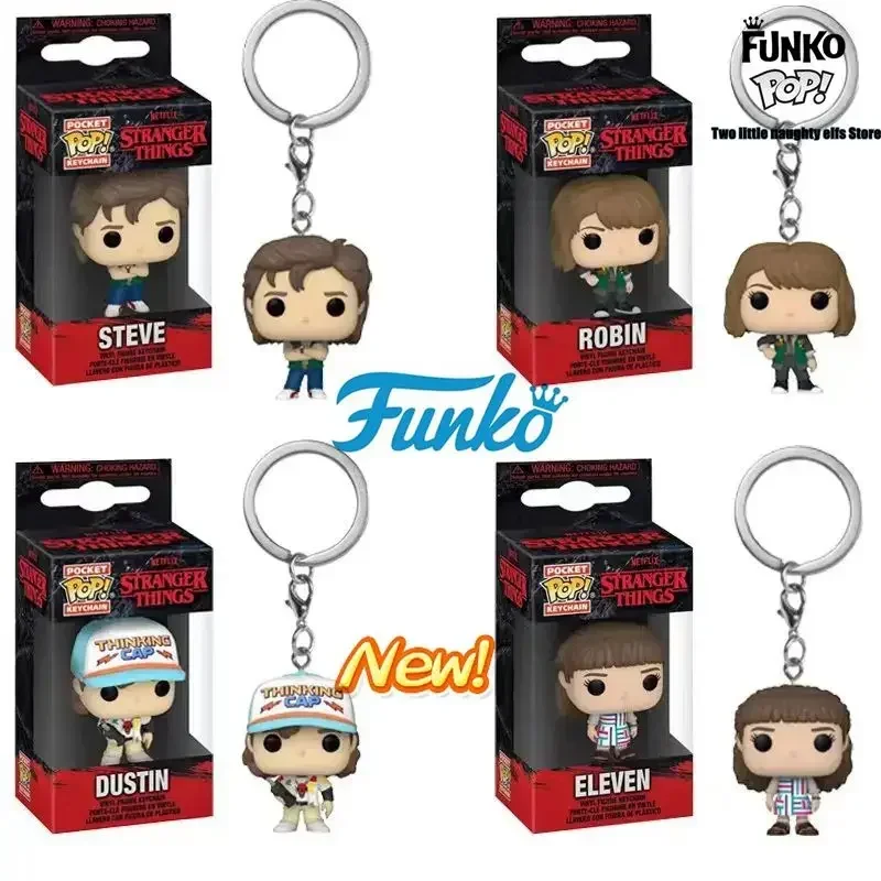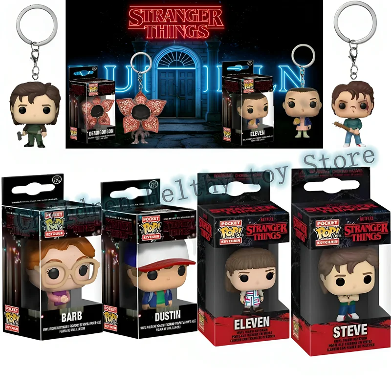 2026 Funko POP Pocket Stranger ELEVEN Demogorgon DUSTIN Keychain Barb Robin Steve Collectible Model Dolls Toys for Kids Gifts