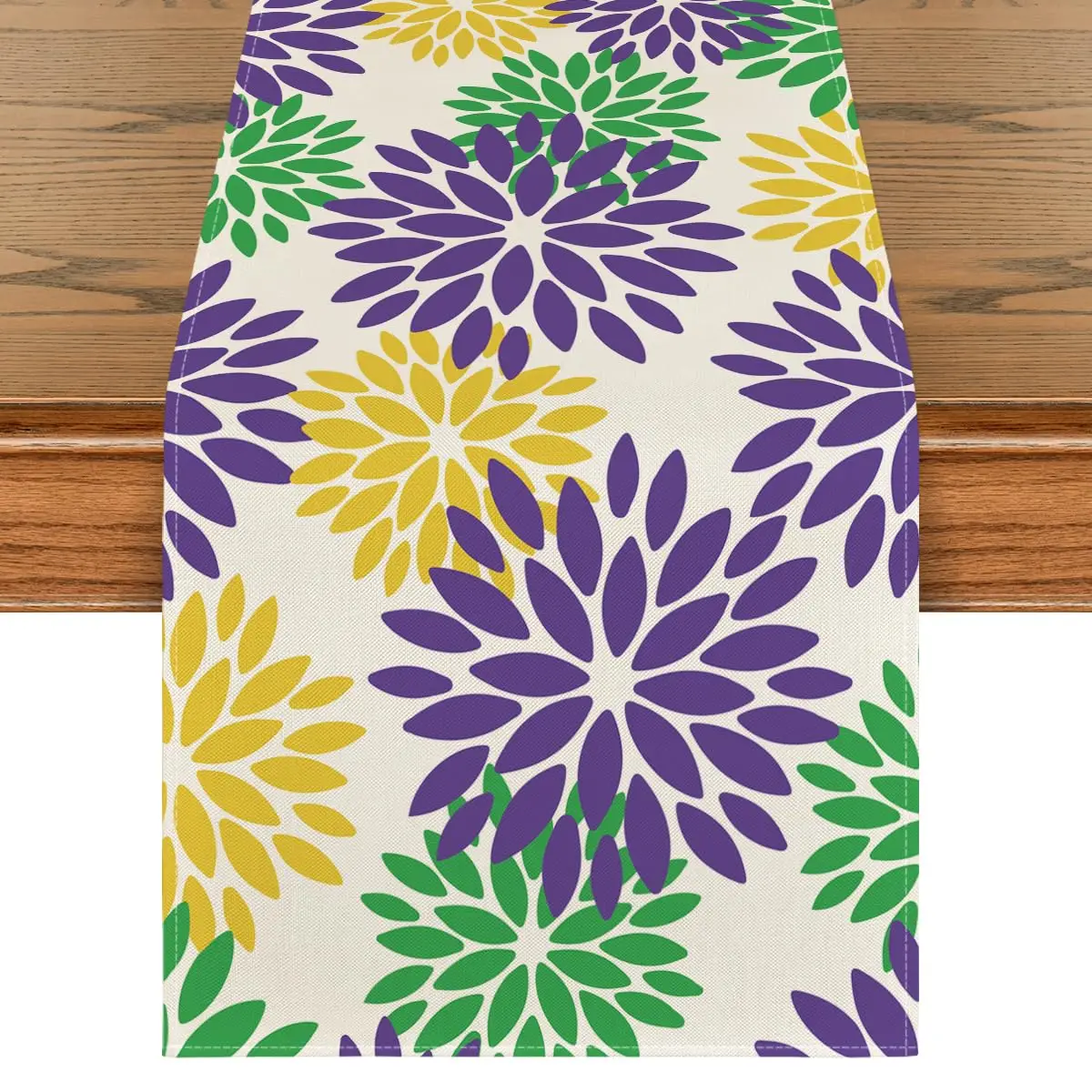 Purple Dahlia Floral Pinnata Mardi Gras Table Runner, Carnival Seasonal Kitchen Dining Table Decoration for Home Party Decor